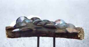 江边崖壁上有很多石龛,以前周围的居民用来存放死者的骨灰盒,希望死者能够永远的怀望这条曾流经他们生命的河。在石壁下面的这件作品,诉说的就是生与死。